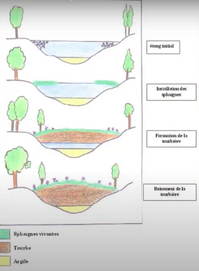 La clé de la tourbe est la Sphaigne, un genre de mousse qui a la propriété de retenir l'eau jusqu'à 30 fois son poids. Il faut 1000 ans pour former une couche d'un mètre de tourbe.