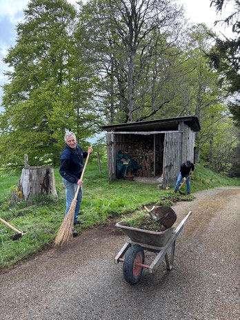 Le chalet a besoin d'un « coup de putz », nettoyer le chemin d’accès, poser les bancs et les tables, désherber les alentours, s'occuper du bois.