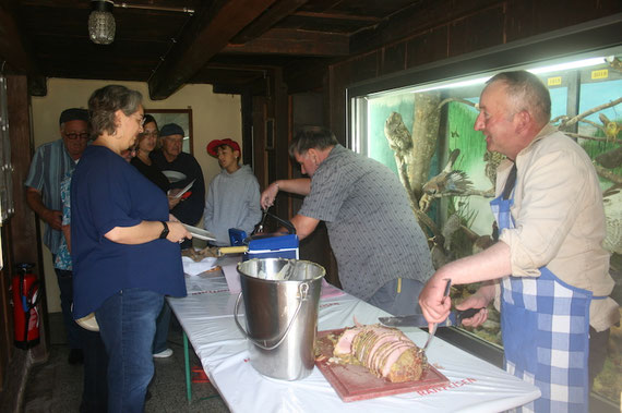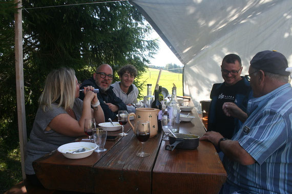 Et ce n’était pas tout ! Après la soupe, nos papilles ont encore été ravies avec du jambon tranché et servi par André et Francis.