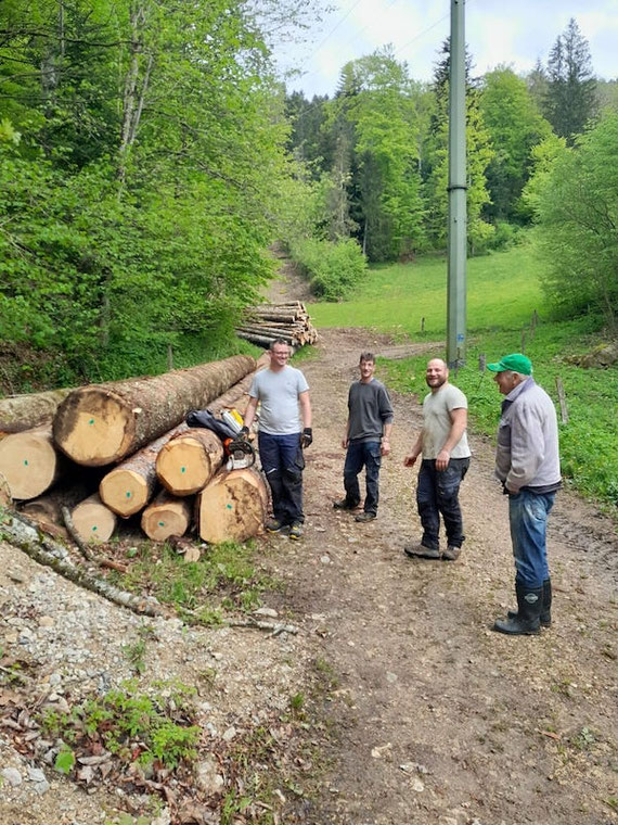 Une deuxième équipe, Humberto, Claude, Marc-Antoine, Aloïs, Mathieu et Kevin, est partie pour le bois à la