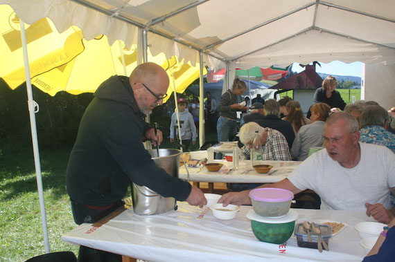 Le moment tant attendu de servir la soupe aux pois est enfin arrivé. C’est avec une grande délicatesse que Margrit et Chichi ont garni les assiettes. À chaque cuillerée, c’était un vrai plaisir, un réconfort profond, autant pour le cœur que pour l’esprit. Un franc succès — un immense merci à nos talentueux cuisiniers !